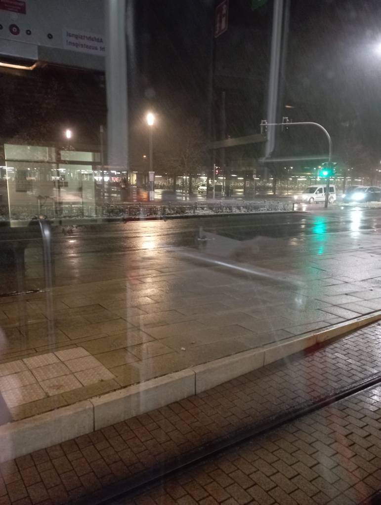 Hauptbahnhof bei nassen Schneeregen (Foto: Roland R. Maxwell).